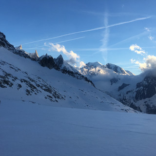 Direction le bassin d’Argentière avec les jolies faces nord qui dominent le refuge éponyme : les Courtes, les Droites, la Verte… la montagne est majestueuse !